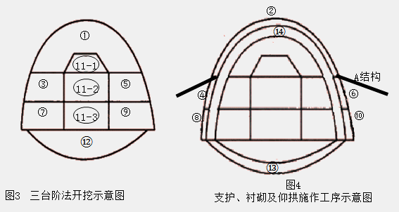 针对开挖时右侧围岩相对左侧围岩较弱的特点,施工单位拟①→②→③→④→⑤→⑥→⑦→⑧→⑨→⑩→⑪→⑫→⑬→⑭顺序组织施工。