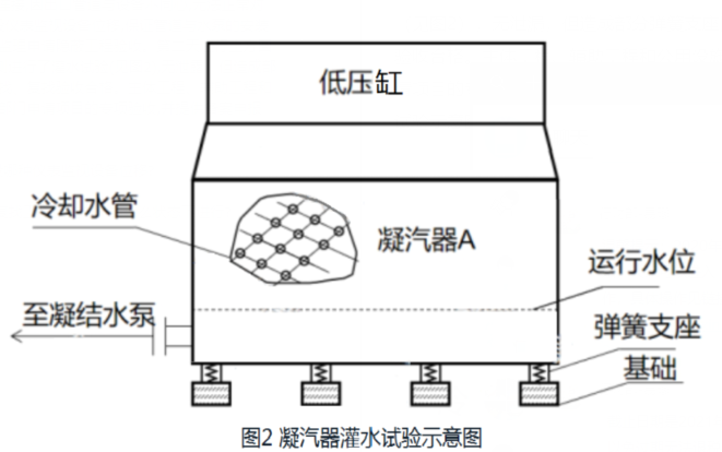 A公司总承包2X660MW火力发电厂1#机组的建筑安装工程,工程包括:锅炉、汽轮发电机、水处理、脱硫系统等。A公司将水泵、管道安装分包给B公司施工。B公司在凝结水泵初步找正后,即进行管道连接,因出口管道与设备不同心,无法正常对口,便用手拉葫芦强制调整管道,被A公司制止。B公司整改后,并在联轴节上架设仪表监视设备位移,保证管道与水泵的安装质量。锅炉补给水管道设计为埋地敷设,施工完毕自检合格后,以书面形式通知监理申请隐蔽工程验收。第二天进行土方回填时,被监理工程师制止。在未采取任何技术措施的情况下,A公司对凝汽器汽侧进行了灌水试验(见图2),无泄露,但造成部分弹簧支座因过载而损坏。返修后,进行汽轮机组轴系对轮中心找正工作,经初找、复找验收合格。主体工程、辅助工程和公用设施按设计文件要求建成,单位工程验收合格后,建设单位及时向政府有关部门申请项目的专项验收,并提供备案申报表、施工许可文件复印件及规定的相关材料等,项目通过专项验收。