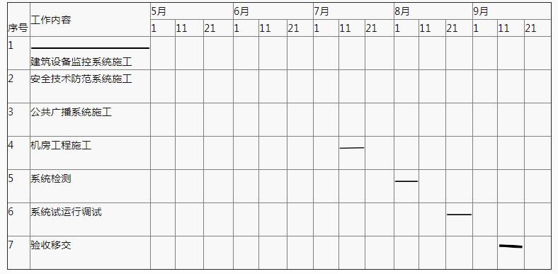 2、项目部编制的建筑智能化工程施工进度计划为什么被安装公司否定?这种表达方式的施工进度计划有哪些缺点?