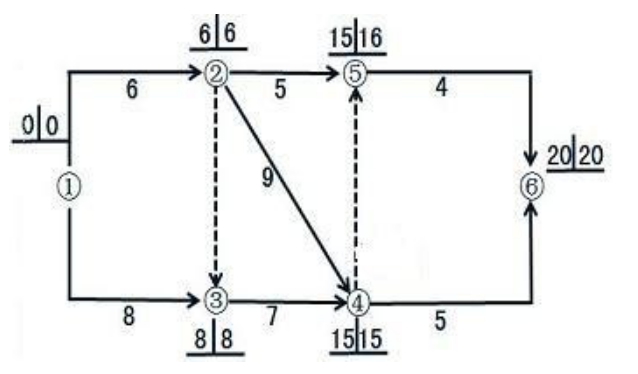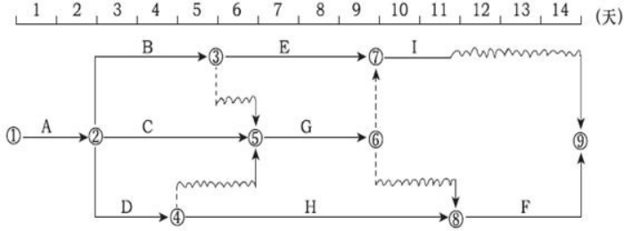 116、某分部工程双代号时标网络计划如下图所示,该计划所提供的正确信息有()。