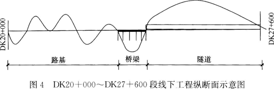 该标段起止里程为DK00+000~DK27+600,其中DK20+000~DK27+600段线下工程纵断面如图4所示,主要工程内容如下:
