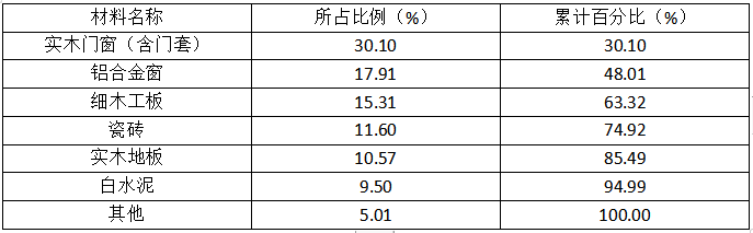 各种装饰装修材料占该批材料价款的累计百分比一览表