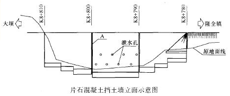 某施工单位承接了一段路基工程施工,其中K8+780~K8+810为C20片石混凝土重力式挡土墙,墙高最高为12m,设计要求地基容许承载力不小于0.5MPa。片石混凝土挡土墙立面如下图所示。挡土墙施工流程为:施工准备→测量放线→基槽开挖→验基→地基承载力检测→测量放线→搭脚手架→立模加固→浇筑混凝土并人工摆放片石→拆除模板交验→养护。