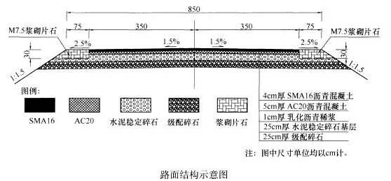 某施工单位承接了K0+000~K48+000段二级公路路面施工,路面结构示意图如下图所示,该公路靠近三峡某风景旅游区,沿线居民较多。