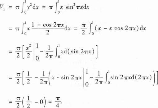 sinπx(0≤x≤1)与x轴围成,则D绕x轴旋转所成旋转体的体积为________.