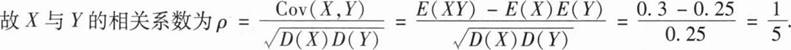 所以E(XY)=0.3,E(X)=E(Y)=0.5,D(X)=D(Y)=0.25,
