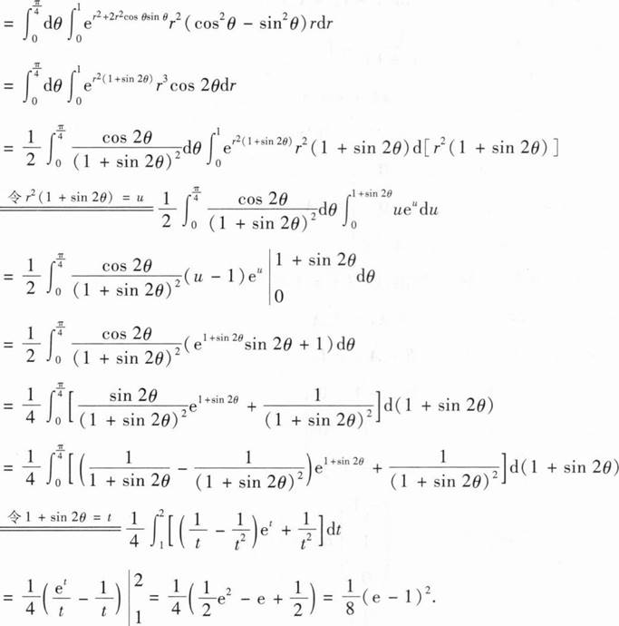 19、设有界区域D是圆x2+y2=1和直线y=x及x轴在第一象限围成的部分,计算二重积分