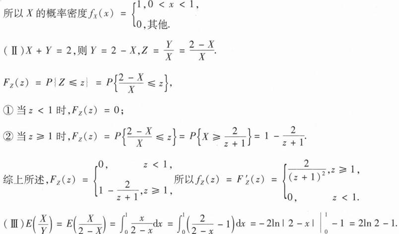 22、在区间(0,2)上随机取一点,将该区间分成两段,其中较短一段的长度记为x,较长一段的长度记为y,并令Z=