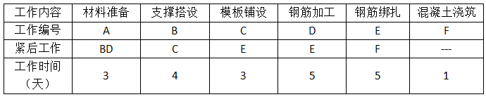 事件二:工程楼板组织分段施工,某一段各工序的逻辑关系见下表: