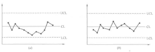 3、事件3中,根据预拌混凝土坍落度控制图(图3-1),分别判断(a)、(b)所示生产过程中是否正常,并说明理由。