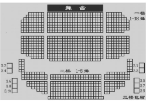20、 北京市某区拟建有一座综合性大型剧院,建筑高度24m,共3层,首层层高12米,二、三层层高6米,每层建筑面积1837平方米。剧院在一层配套设施有水吧,小卖店,咖啡座,专为残疾人设计的电梯、卫生间和地上停车场等。整个剧院具有一个1000座席的大厅(三个楼层可同时观看,如下图)和三个各120座席的小厅。