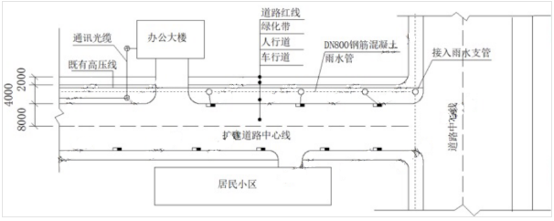 32、某公司中标一条城市支路改扩建工程。施工工期为4个月,工程内容包括:红线内原道路破除,新建道路长度900m。扩建后道路横断面宽度为4m(人行道)+16m(车行道)+4m(人行道),新敷设一条长度为900m的DN800mm钢筋混凝土雨水管线。改扩建道路平面示意如图2所示。项目部进场后,对标段内现况管线进行调查,既有一组通信光缆横穿雨水管线上方。雨水沟槽内既有高压线需要改移,由业主协调完成。项目部在组织施工过程中发生了以下事件:事件一,监理下达开工令后,项目部组织人员、机械进场,既有高压线改移导致雨水管线实际开工比计划工期晚2个月。事件二,雨水沟槽施工方案审批后,由A劳务队负责施工,沟槽开挖深度为3.8m。采用挖掘机放坡开挖,过程中通信光缆被挖断,修复后继续开挖至槽底。