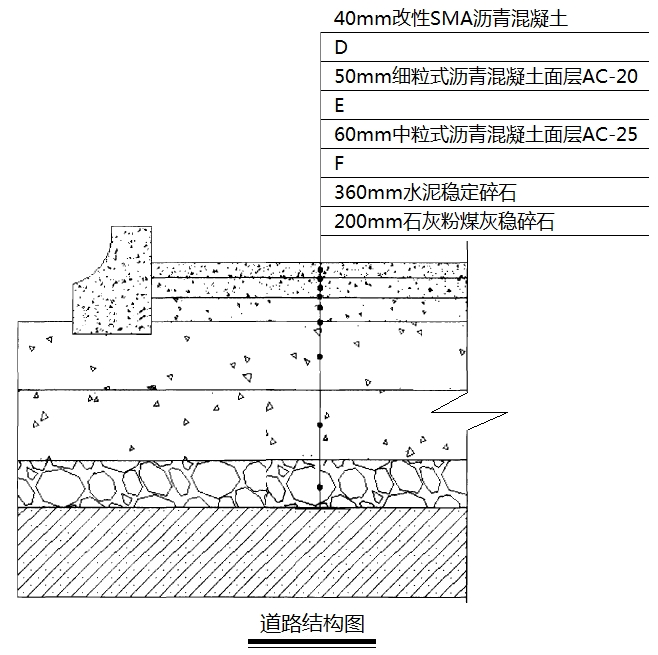 2、道路结构图当中,D、E、F分别代表什么?并说明其施工注意事项。