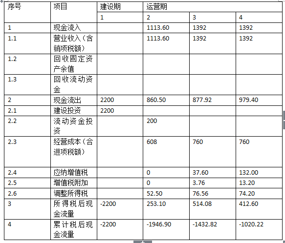(3)进行项目投资现金流量表(第1~4年)的编制,并填入答题卡表1.1项目投资现金流量表中。