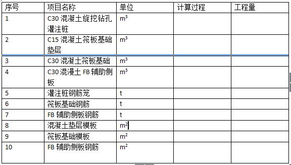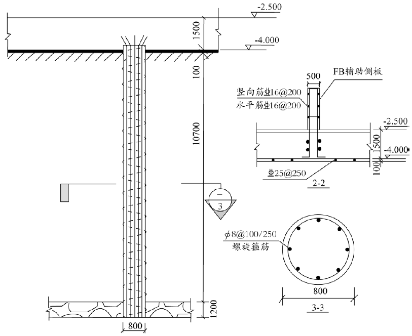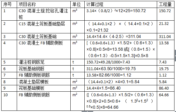③灌注桩、筏板基础、FB辅助侧板混凝土均采用C30,基础垫层混凝土为C15,钢筋采用HRB400。