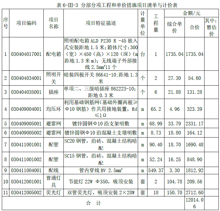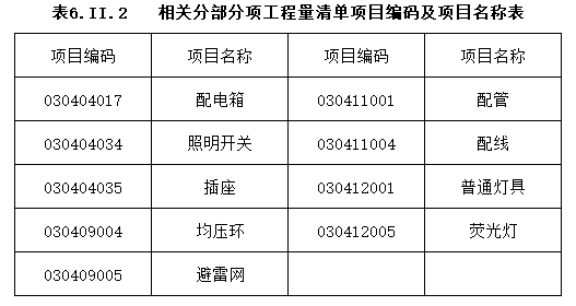 4.相关分部分项工程量清单项目编码及项目名称见表6.II.2。