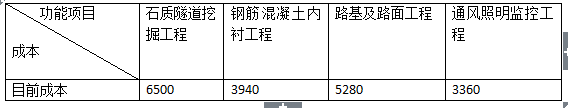 经测算,该四个功能项目的目前成本见表2.2,其目标总成本拟限定在18700万元。