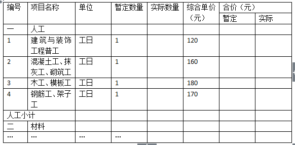 (4)招标工程量清单中给出的“计日工表(局部)”,见表3.1.