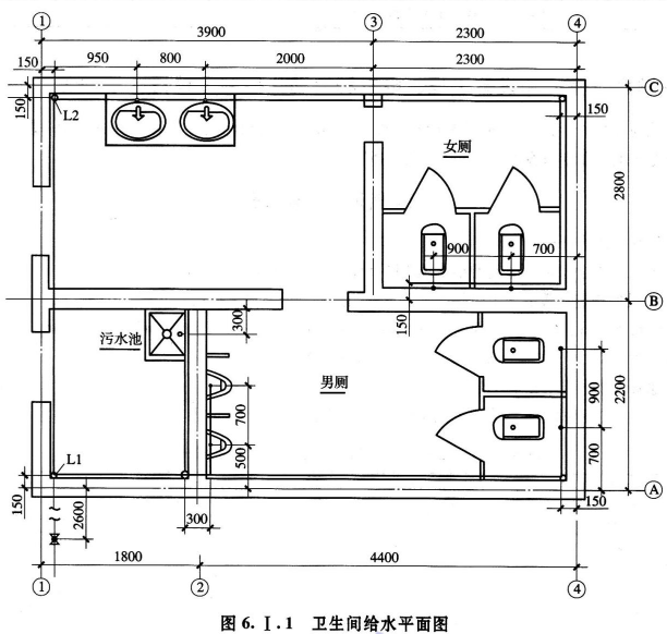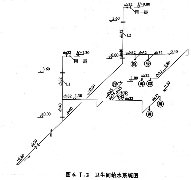 1.某工厂办公楼内卫生间的给水施工图如图6.I.1和6.I.2所示。