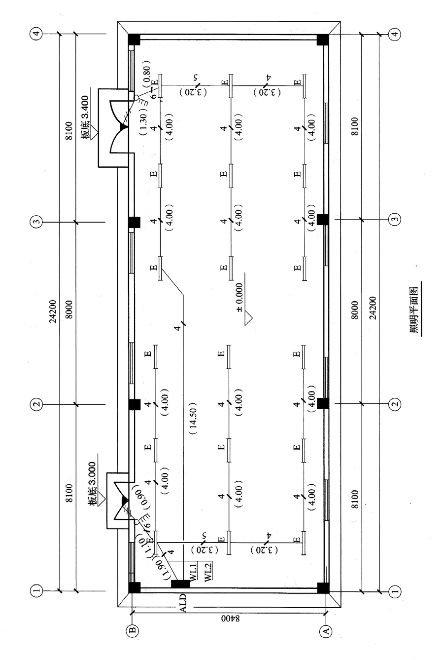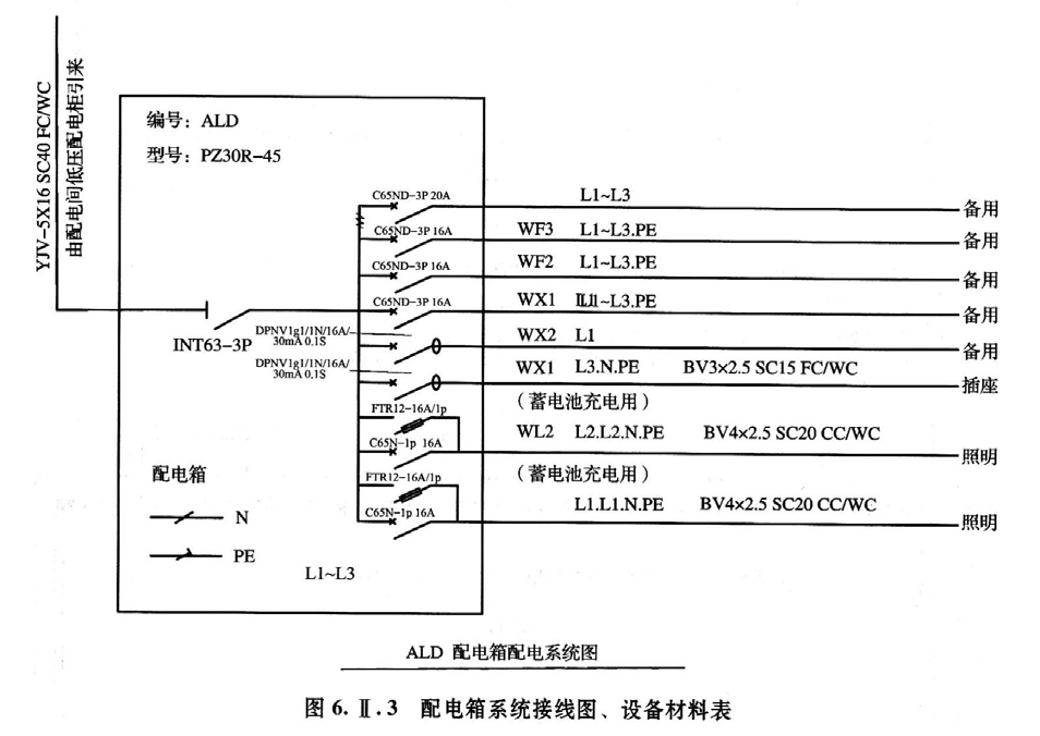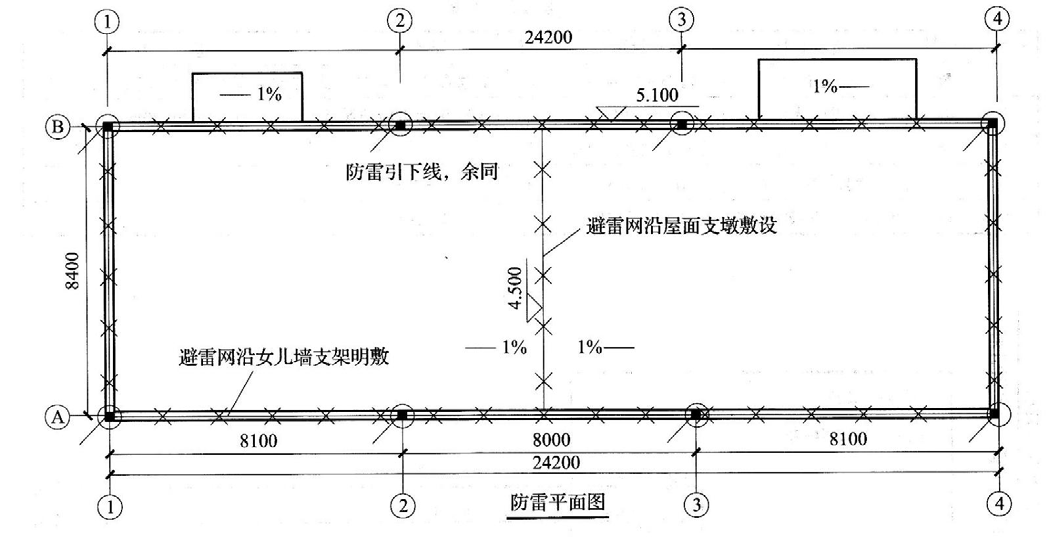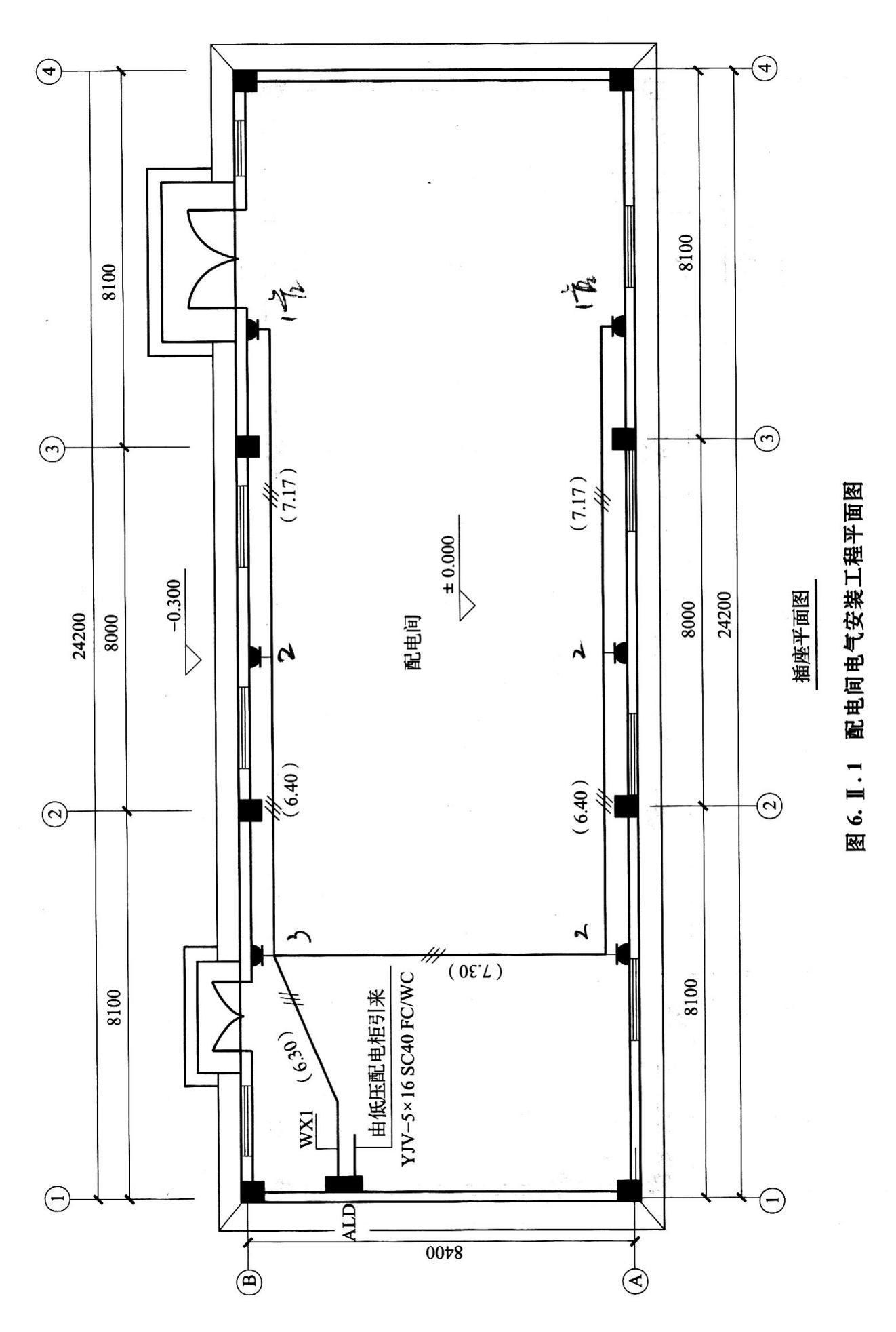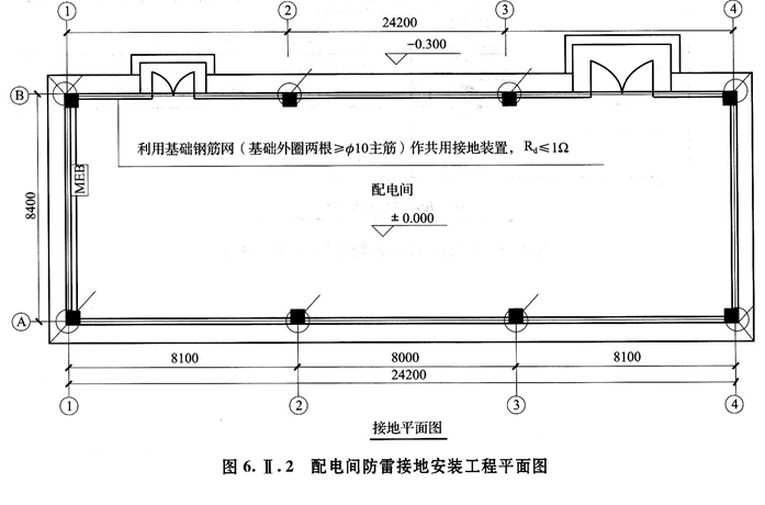 1.图6·Ⅱ·1为某配电间电气安装工程平面图、图6·Ⅱ·2为防雷接地安装工程平面图、图6·Ⅱ·3为配电箱系统接线图及设备材料表。该建筑物为单层平屋面砖、混凝土结构,建筑物室内净高为4.40m。