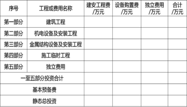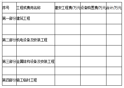 一至四部分建安工作量=(建筑工程+机电设备及安装工程+金属结构设备及安装工程建安+施工临时工程)建安工作量=157.07+258.71+0+28.81=444.59万元