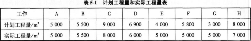 该项目的各项工作均按最早开始时间安排且各工作每月所完成的工程量相等。各工作的计划工程量和实际工程量如表5-1所示。