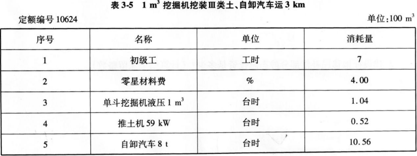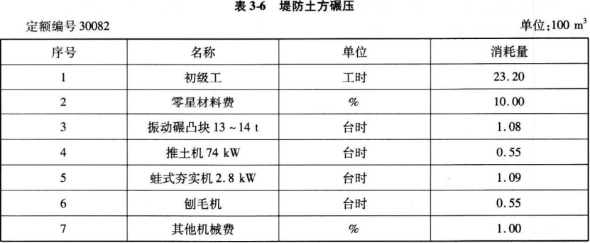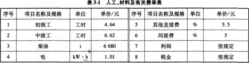 (3)人工、材料、机械台时消耗见表3-3至表3-6。