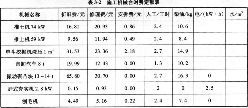 (2)施工机械台时费定额见表3-2。