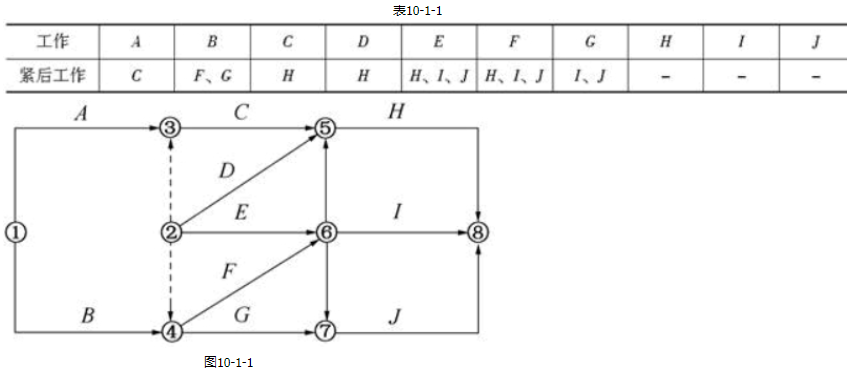 11、某分部工程中各项工作间逻辑关系见表10-1-1,相应的双代号网络计划如图10-1-1所示,图中错误有()。