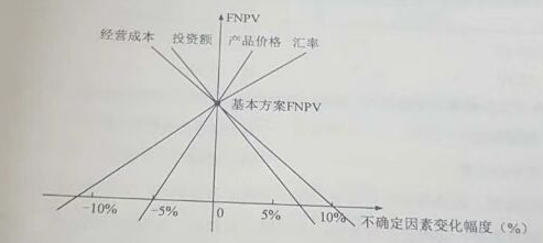 3、对某技术方案的财务净现值(FNPV)进行单因素敏感性分析,投资额、产品价格、经营成本以及汇率四个因素的敏感性分析如下图所示,则对财务净现值指标来说最敏感的因素是()