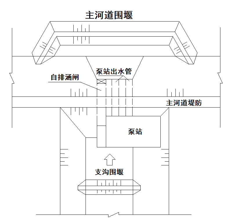 某小型排涝枢纽工程,由排涝泵站、自排涵闸和支沟口主河道堤防等建筑物组成。泵站和自排涵闸的设计排涝流量均为9.0m³/s,主河道堤防级别为3级。
