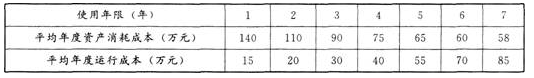 11、某设备在不同使用年限(1至7年)时的平均年度资产消耗成本和平均年度运行成本如下表所示。则该设备在静态模式下的经济寿命为()年。