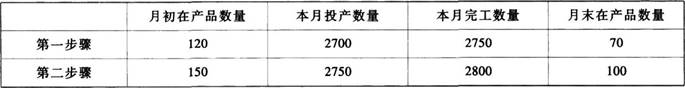 原材料在第一步骤生产开工时一次投入,各个步骤加工成本费用陆续发生,第一步骤和第二步骤月末在产品完工程度分别为本步骤的50%和40%。