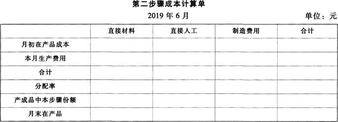 (1)编制第一、二步骤成本计算单(结果填入下方表格中,不用列出计算过程)。