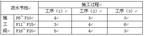 装修施工单位将地上标准层(F6~F20)划分为三个施工段组织流水施工,各施工段上均包含三个施工工序,其流水节拍如下表所示: