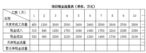 3、项目经理部制定项目成本计划的依据有哪些。施工至第几个月时项目累计现金流为正?该月的累计净现金流是多少万元。