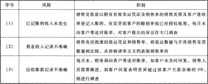 (1)所有的销售订单均交给销售经理审核;销售经理检查客户的剩余授信额度、约定价格等信息,与销售订单进行核对,以决定是否批准销售订单。仓储部根据批准的销售订单开具提货单,准备发货。