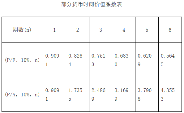 公司选定的折现率为10%,部分货币时间价值系数如下表所示。