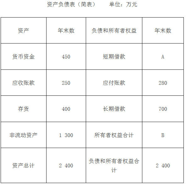 (1)计算上表中字母A和B所代表的项目金额。