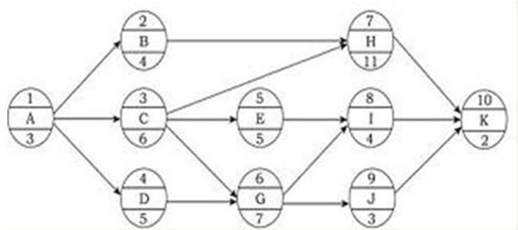 115、某工程单代号网络计划如下图所示,节点中下方数字为该工作的持续时间,其中的关键工作有