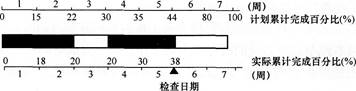 118、某钢筋绑扎工程计划进度与实际进度如下图所示,该图表明本工程( )。