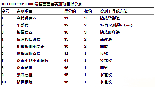 5、计算分项工程(K0+000~K2+000段路面面层)的评分值(计算结果保留一位小数),并评定该分项工程的工程质量等级。