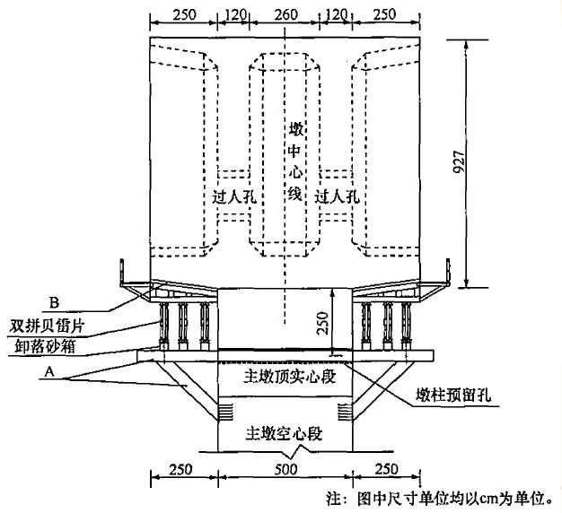 事件一:根据本桥的地质,地形和水文情况,施工单位主桥上部结构采用悬臂浇筑施工法,其中0号,1号采用托架法施工,悬臂端托架布置示意图如下: