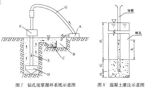 事件3:钻孔施工的钻孔及泥浆循环系统示意图如图7所示,其中D为钻头,E为钻杆,F为钻机回转装置,G为输送管,泥浆循环如图中箭头所示方向。