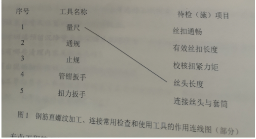 3.对图1中钢筋直螺纹加工、连接常用工具及待检(施)项目对应关系进行正确连线。(在答题卡上重新绘制)
