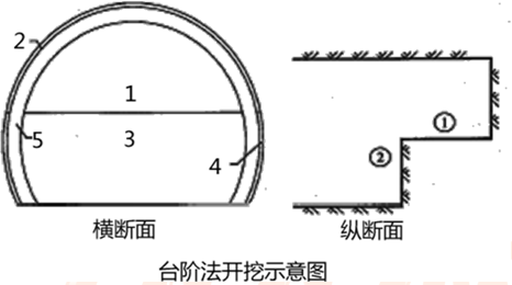 3.台阶法开挖示意图中的1、2、3、4、5各是指什么施工工序?