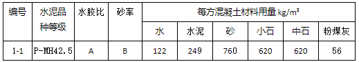 表1面板混凝土配合比: