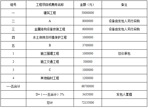 2表4-1中A、B、C、D所代表的工程或项目名称是什么?指出预留D的目的和使用D的估价原则。