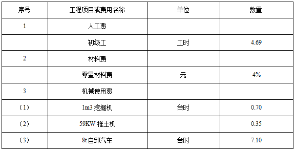 xx集团2015年7月12日xx集团投标文件中,投标报价汇总表(分组工程量清单模式),如表4-1所示,其中围堰拆除工程采取1m3挖掘机配8t自卸汽车运输施工,运距3Km,相关定额如表4-2所示。围岩为四类土(定额调整系数为1.09),初级工、1m3挖掘机、59KW推土机、8t自卸汽车的单价分别为2.66元/工时、190元/台时、100元/台时、120元/台时。