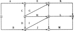 113、某工程双代号网络计划如下图所示,其绘图错误有()